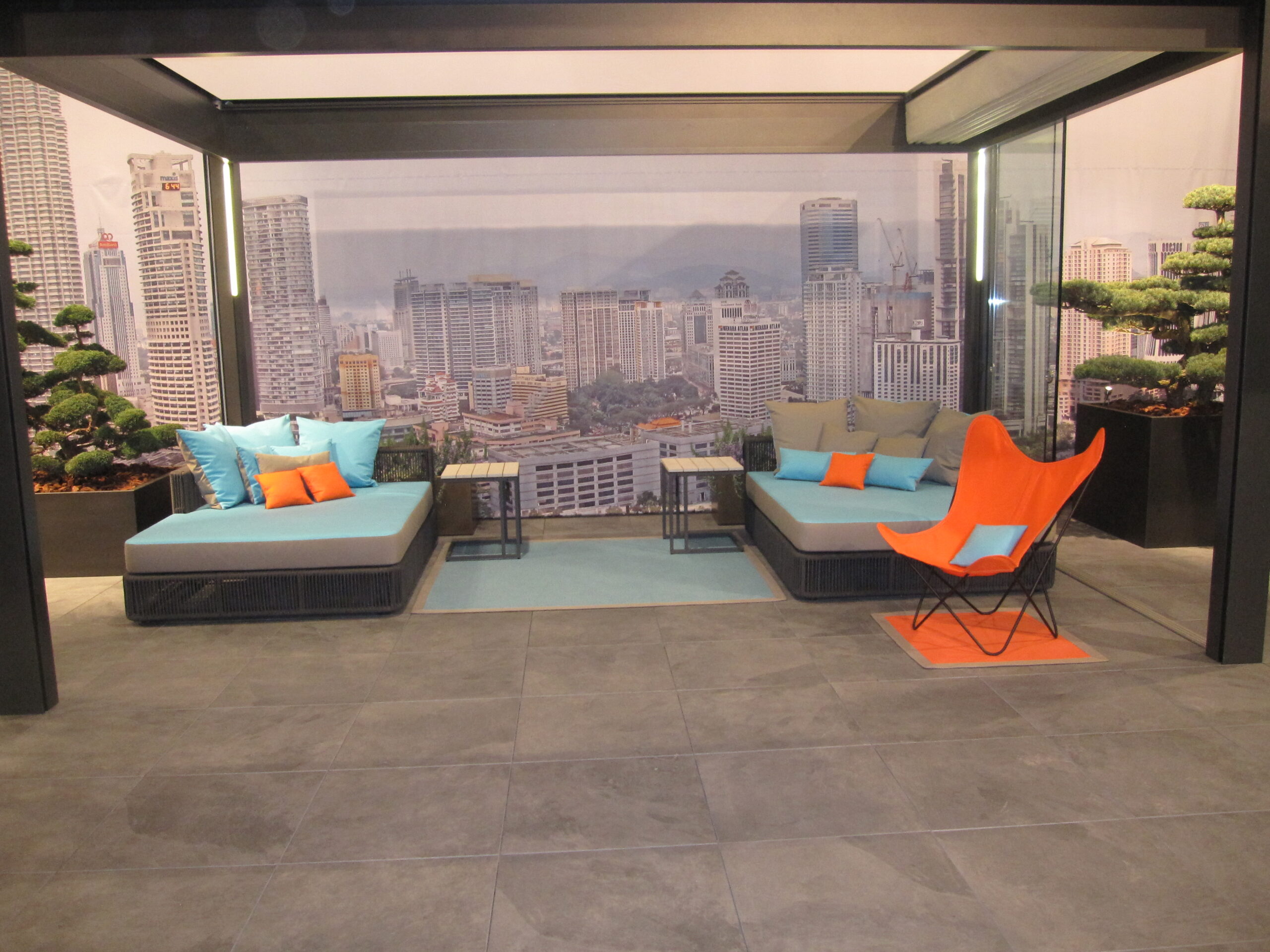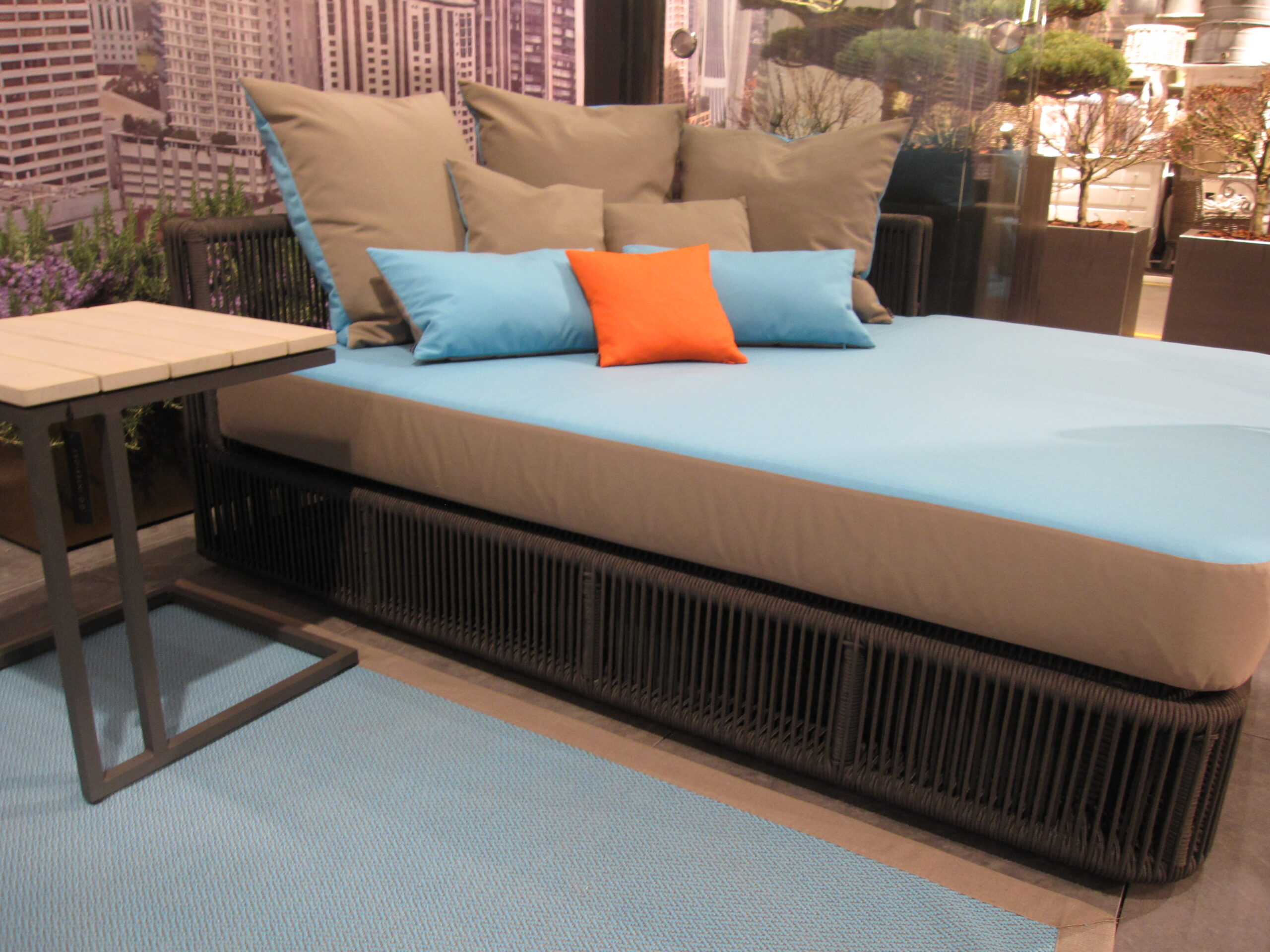 Wetterfester, schmutz- und flüssigkeitsabweisender outdoor Teppich in türkis/taupe im Format 190 x 160cm (perfekt Grösse zwischen zwei Borek Chaises Longues). Kann auch indoor aufgrund seiner flüssigkeitsabweisenden Eigenschaften auch für pflegeleichtes Wohnen eingesetzt werden.